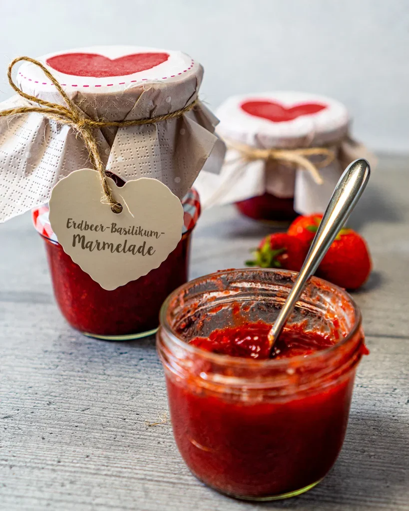 Natürlich darf der Geschmack auch nicht zu kurz kommen, weshalb wir unsere perfekt eingekochte Marmelade mit etwas Basilikum verfeinern – perfekt im Geschmack und so raffiniert eingekocht.