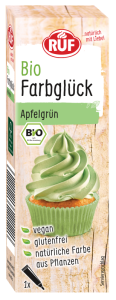 • In der Zwischenzeit das Frosting zubereiten. Hierfür alle Zutaten miteinander verrühren und in die Farben grün und rot einfärben.