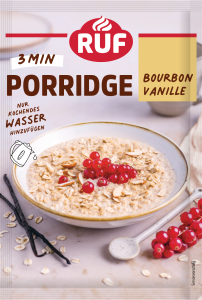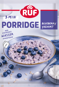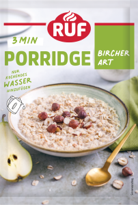 Unser RUF Porridge Classic enthält 65 g der fertigen Porridge Mischung. Du füllst es nur mit 150 ml kochendem Wasser auf und hast dann ein leckeres Frühstück. 100 g zubereitetes Produkt haben 486 kcal. Das mag im ersten Moment nach einer ordentlichen Portion klingen, doch verglichen mit anderen Frühstücksoptionen wie Croissants oder Müsli, ist das durchaus im Rahmen. Die Kalorien in Haferflocken sind gut investiert, denn sie sind vollgepackt mit Nährstoffen und langkettigen Kohlenhydraten, die dich über Stunden hinweg mit Energie versorgen. Denkt daran, dass die Kalorienanzahl allein nicht ausschlaggebend ist, sondern auch die Qualität der Kalorien eine entscheidende Rolle spielt.