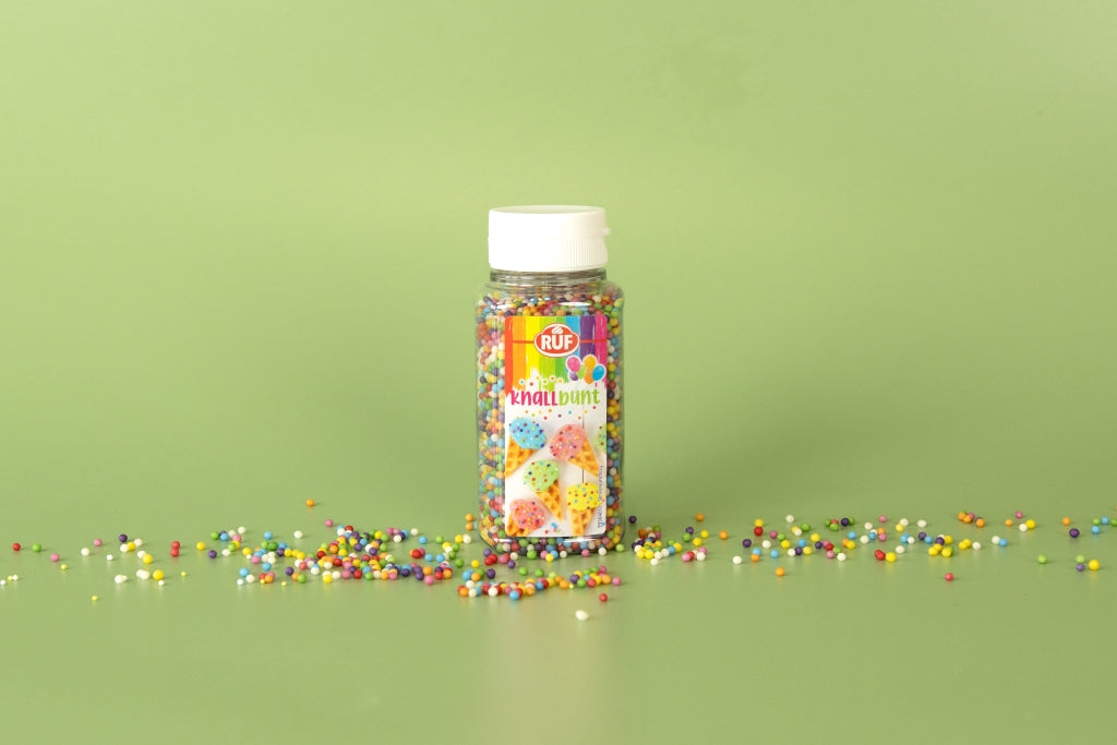 Knallig bunte Zuckerperlen für ein buntes Dekorieren