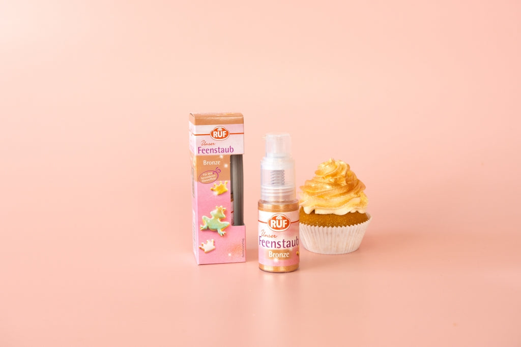 Manchmal hilft ein wenig Feenstaub, um den Alltag zu verschönern!Unser neuer RUF Feenstaub in verleiht Kuchen, Pralinen, Cupcakes, Keksen, Waffeln, Früchten und Desserts einen wunderschönen schimmernden Glanz und einen edlen Look. Mal ehrlich: Ein wenig Glitzer und die Welt sieht doch gleich viel hübscher aus. Mit dem funkelnden Glitzer rundest du jede deiner Kreationen ab und veredelst diese auf eine ganz besondere Art. Mit unserem RUF Feenstaub sorgst du spielend leicht für einen besonderen Glanzeffekt. Der feine Glitzer-Staub, in der einfach zu bedienenden Pumpflasche ohne Aerosol und ohne Titandioxid, versprüht einen tollen Glanz auf all deinen Back- und Dessertkreationen. Den essbaren Glitzer kannst du nämlich auch auf Cremes oder auf Schokolade sowie Fondant anwenden.