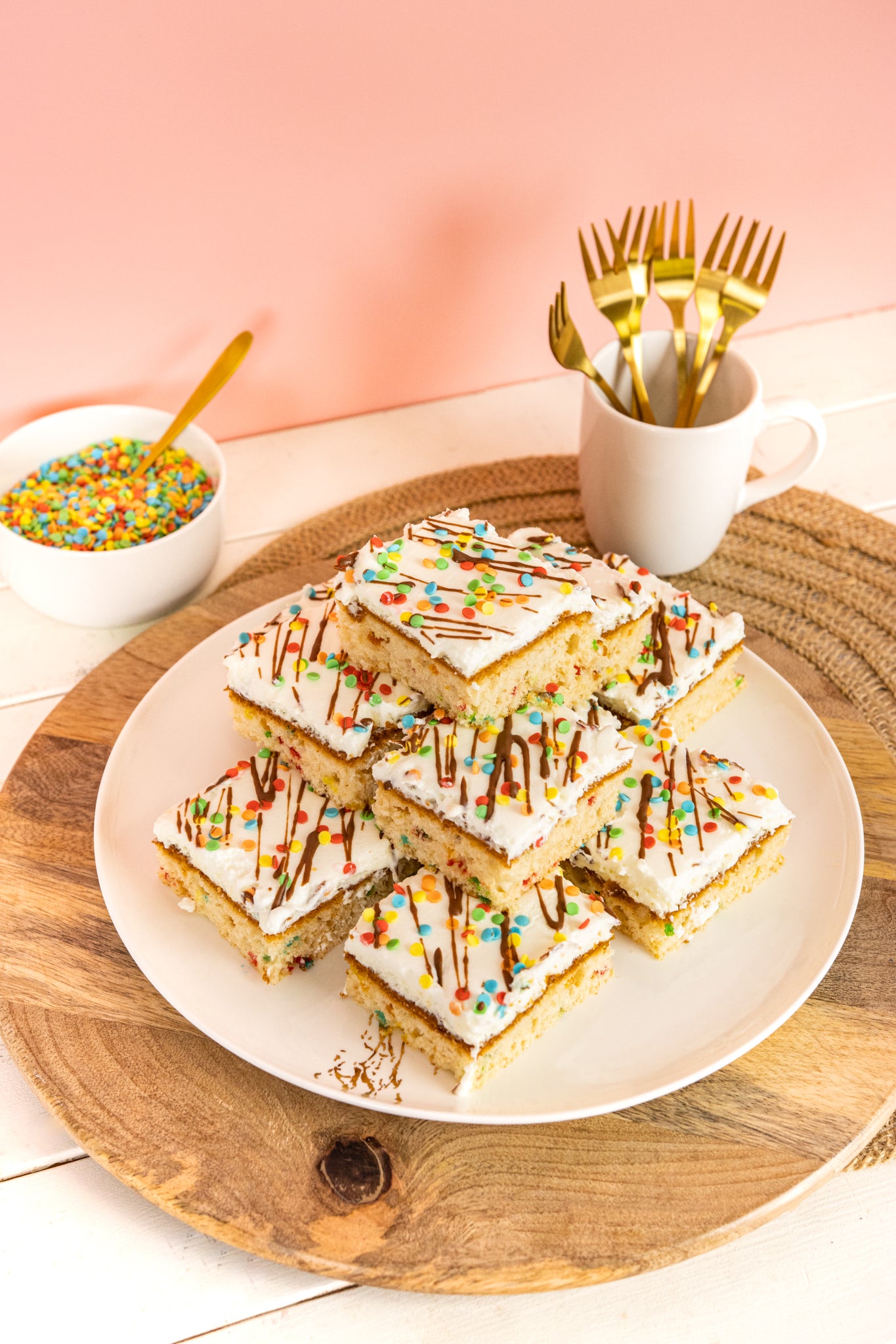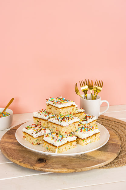 Er ist saftig, schnell zubereitet, ein ganz fluffiger Kuchen aus Rührteig und der beste Blechkuchen für einen Kindergeburtstag, die Rede ist von unserem Funfetti Kuchen.Der luftige Teig wird von einer geschmeidigen Vanillecreme getoppt. Viele bunte Streusel auf der Creme und im Teig machen diesen Konfetti-Kuchen zu einem echt Highlight für jedes Kind. Unser Funfetti Kuchen macht sich aber auch besonders gut beim nächsten Kuchenbuffet in der Schule, der Kita oder zum Fasching bzw. Karneval.