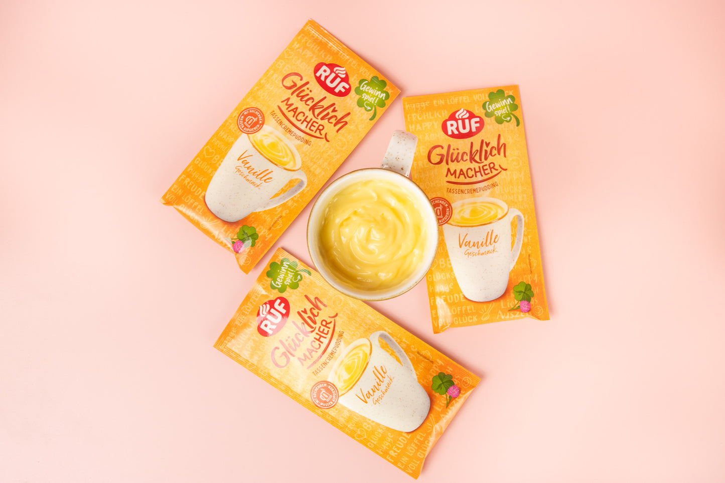 Der RUF Glücklichmacher Tassencremepudding Vanille begeistert durch seinen klassischen Vanillegeschmack. Der Vanillepudding überzeugt mit seiner einfachen und gelingsicheren Zubereitung: Einfach nur den Inhalt des 59g-Beutels in eine Tasse geben, mit 150 ml kochendem Wasser vermengen, umrühren und den Tassenpudding mit Vanillegeschmack genießen. So lässt sich im Handumdrehen ein leckeres Dessert für zwischendurch zubereiten.