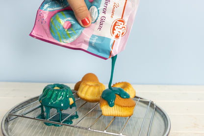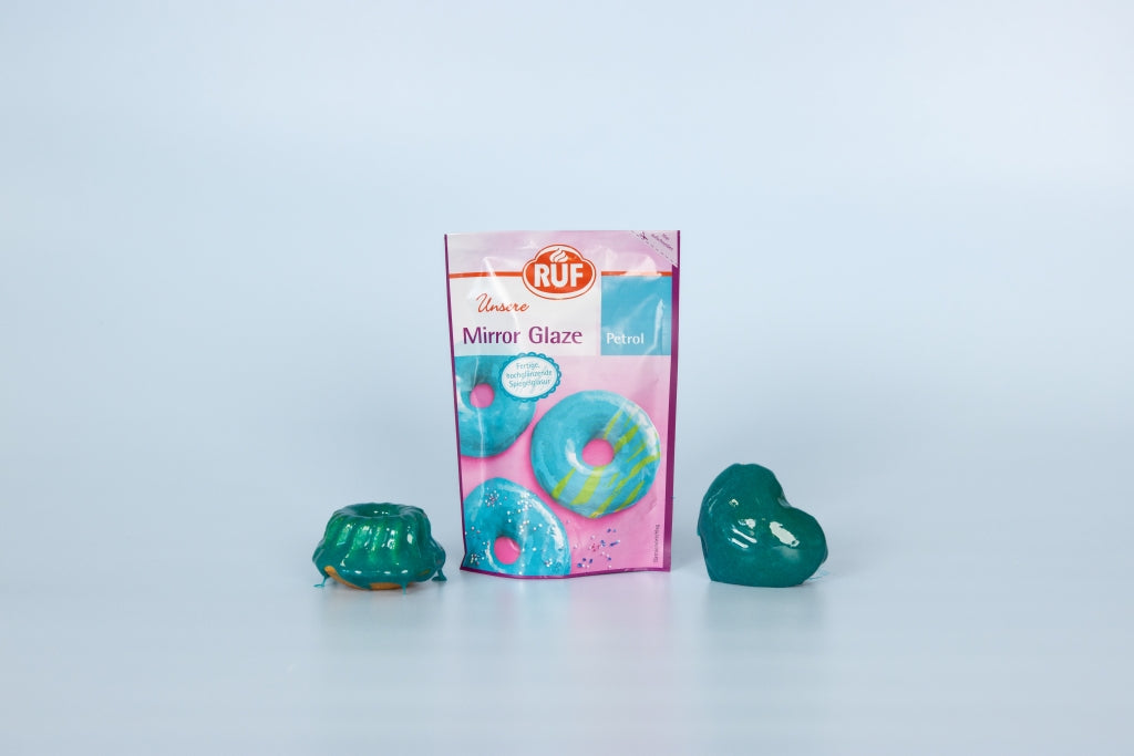 Mirror Glaze ist der Tortentrend der letzten Zeit, fasziniert verfolgten auch wir die vielen Videos und Bilder in den Sozialen Netzwerken. Aber was ist Mirror Glaze?Mirror Glaze ist eine neue Art Glasur, mit der man einen perfekten Spiegelglanz auf das Gebäckstück zaubert. Der Effekt kommt ganz besonders auf glatten Mousse-Torten zur Geltung.So schön der Effekt ist, die Zubereitung einer Mirror Glaze ist gar nicht so einfach und bedarf einiger Zutaten.Um dir das Arbeiten mit der Spiegelglanz-Glasur zu vereinfachen, haben wir für dich eine komplett fertige Variante kreiert. Du brauchst lediglich den Glasurbeutel erwärmen und schon kannst du deine Mousse-Torte, Muffins oder einen Tortenboden verspiegeln. Besonders schöne Effekte können auf dem Gebäck erzielt werden, wenn mehrere Farben der Mirror Glaze zusammen verwendet werden.