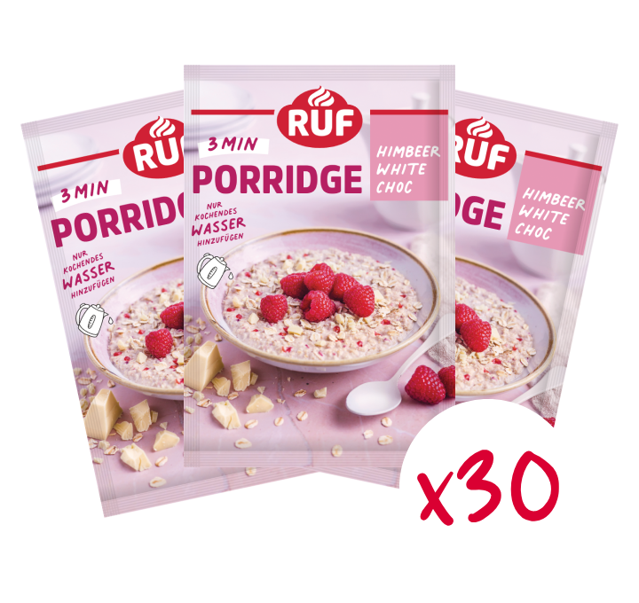 RUF Monats-Vorrat Porridge Himbeer White Chocolate (30 Stück)