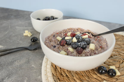 Ob als vollwertiges Frühstück oder für den kleinen Hunger zwischendurch - unser Porridge liefert dir schnell neue Energie, damit du wieder durchstarten kannst! Aber was ist Porridge eigentlich?Porridge ist seit vielen Jahren schon ein bekanntes englisches Frühstücksgericht, welches die Amerikaner als Oatmeal bezeichnen. Bei uns in Deutschland kennen wir das Porridge eigentlich auch schon sehr lange, nämlich als Haferbrei. Lange genug war der Haferbrei bei uns verpönt. Es ist jedoch nicht ganz grundlos, dass die Hafermahlzeit nun so geschätzt wird. Der Brei steckt nämlich voller komplexer Kohlenhydrate, wertvoller Nähr- und Mineralstoffe sowie pflanzlichem Eiweiß. Mit frischem Obst und leckeren Aromen kombiniert, ist das Porridge extrem wandlungsfähig und ein tolles Geschmackserlebnis.Unser Porridge Blueberry Yoghurt bietet dir die perfekte Kombination aus Frucht und zarten Haferflocken. Selbst wenn es morgens schnell gehen muss ist unser Porridge mit feinen Blaubeeren und frischem Joghurt der perfekte Begleiter. Einfach mit heißem Wasser aufgegossen, kurz gewartet, verbreitet sich beim Verzehr ein wohliges und warmes Gefühl. Jetzt mit neuer Rezeptur, noch köstlicher!