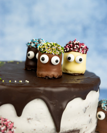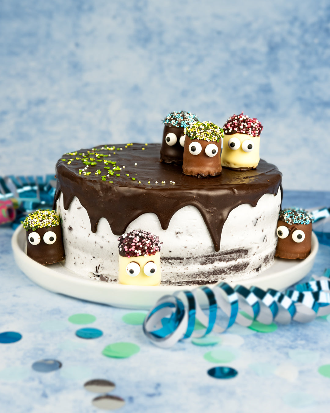 - Dekoriere den Kuchen mit den bunten RUF-Dekoren und Schokoküssen, die Du mit unserer warmen Kuchenglasur und Zuckeraugen verzierst.