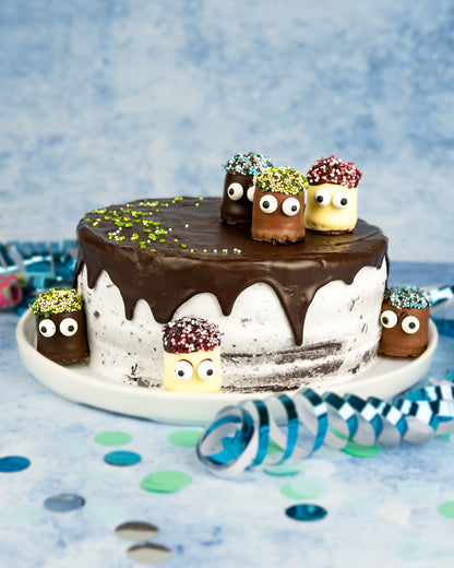 Mit unserem Rezept-Set kreierst Du eine beeindruckende Schokokuss-Torte, ideal für Kindergeburtstage oder Einschulungen. Der Kuchen wird saftig und schokoladig, die Creme fluffig und süß, und die Dekoration wird Deine Gäste begeistern.