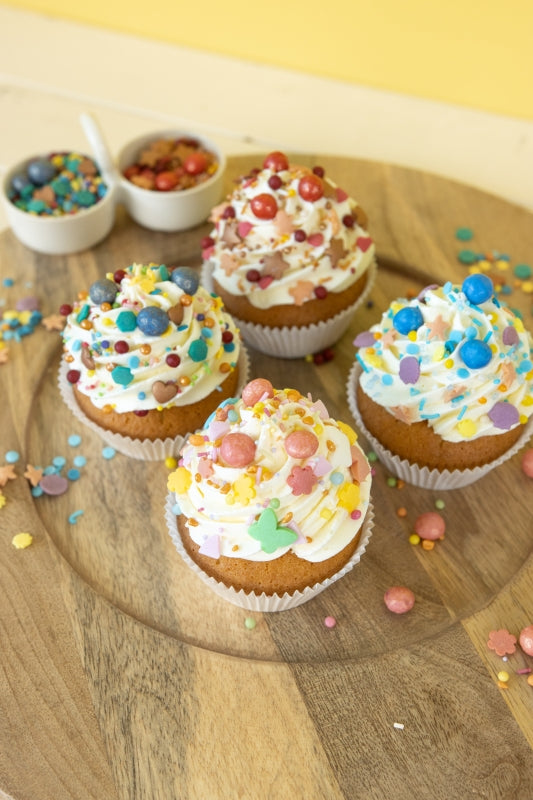 Unsere neuen Dekor-Mixe Streusel Liebe sind so viel mehr als einfach nur ein paar bunte Streusel. Ein Mix aus zarten Farben mit Schmetterlingen und Blüten, bunten Kugeln, Sterne, Lebkuchen-Männer und ganz viel Glitzer machen unsere neuen Streuselmixe einzigartig und perfekt für jeden Anlass. Lass dich verstreuseln und zaubere mit unseren Dekor-Mixen Streusel Liebe aus ganz normalen Torten ein absolutes Kunstwerk.