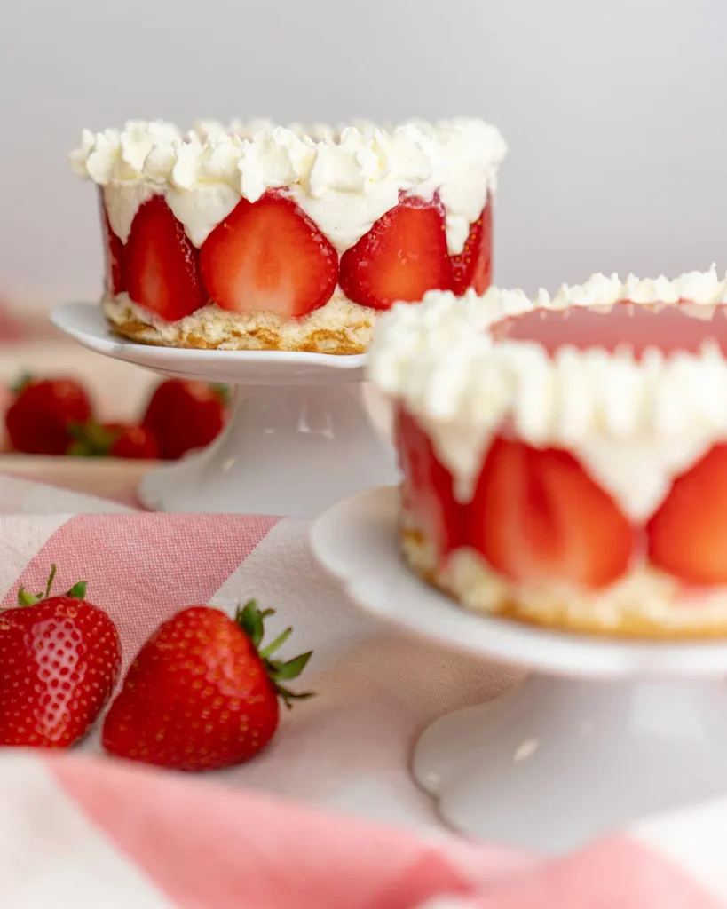 Wenn du jedoch zu den Verfechtern einer großen Erdbeertorte gehörst, kannst du dies Rezept selbstverständlich auch in einer großen Springform zubereiten.